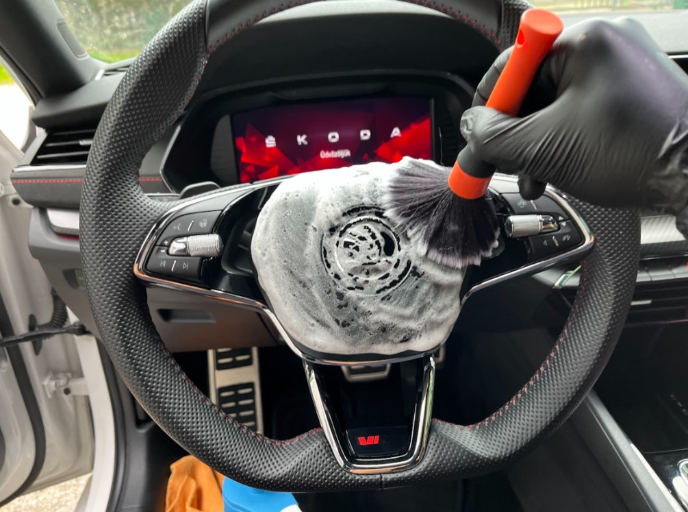A teljes belső teret és a csomagtartót mélytisztítjuk. A bőrkárpitokat pH-semleges bőrtisztítóval megtakarítjuk, majd bőrkondícionálóval leápoljuk. A szövetkárpitokat, szőnyegeket, és a szövet üléshuzatokat kiporszívózzuk, és az ügyfél kérésére kárpittisztítjuk. A műszerfalat, középkonzolt, és az ajtópaneleket megtisztítjuk, majd speciális ápolószerekkel kezeljük, hogy visszanyerjék az eredeti fényüket. Az ablakokat megtisztítjuk, zsírtalanítjuk, és csíkmentesre töröljük.